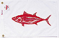 Diver flags have a diagonal white stripe across a red field. The "Alpha" signal code flag can also signify "diver down". Guest boat flags have a white diagonal stripe across a blue field. Quarantine boat flags are yellow blanks and are also offered in five other signal code flag sizes. Quarantine flags are used to declare entry into a foreign country and to request customs and immigration clearance. The quarantine flag is flown from the port side of the boat and replaced by the courtesy flag of the visited country once cleared into port. Dinner / Meal flags are plain white blanks. Owner Absent flags are navy blue blanks. Beer flags, Cocktail flags and Happy Hour flags are also offered in full size 3x5 ft sizes. The 19th hole flag pertains to after golf libations, and not so much to boating. Jolly Roger, Gadsden and Confederate boat flags are 12x18"and are also available in full flag sizes. The Skunk flag signifies "no fish", "getting skunked" or not hooking a fish. Once you catch a fish, you'll probably be proud to fly one of our fish flags. The I Love Fishing and I Love Sailing flags have stylized text along with the red heart emblem on a white field. If you don't want to allow smoking on board, use the No Smoking flag, white lettering on a green field with the universal red slash symbol. You can also invite other boaters or even landlubbers on board with the Coffee Time flag (cup of hot java on a purple flag) or the Cocktail flag, a white flag with double martini glasses. The USA Patriot flag simply spells out "USA" in a red, white and blue motif.